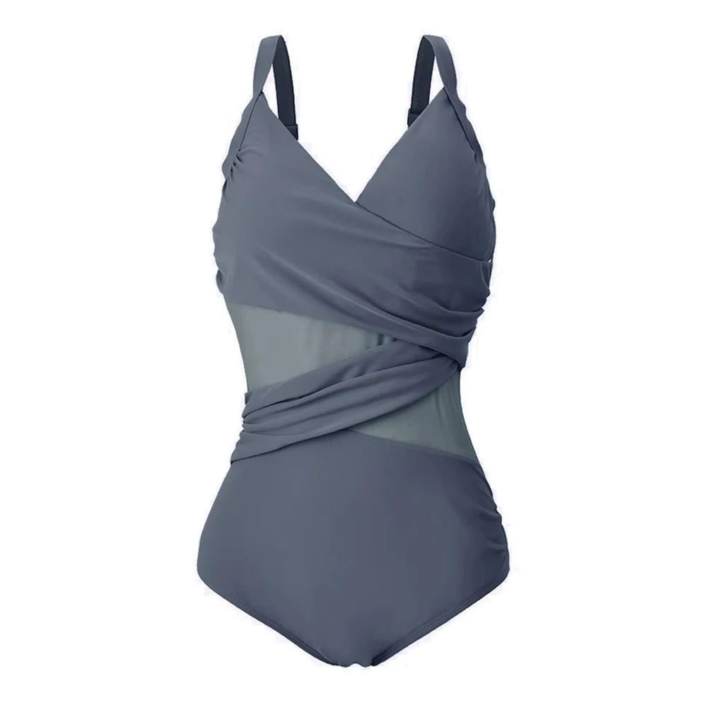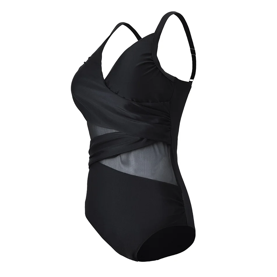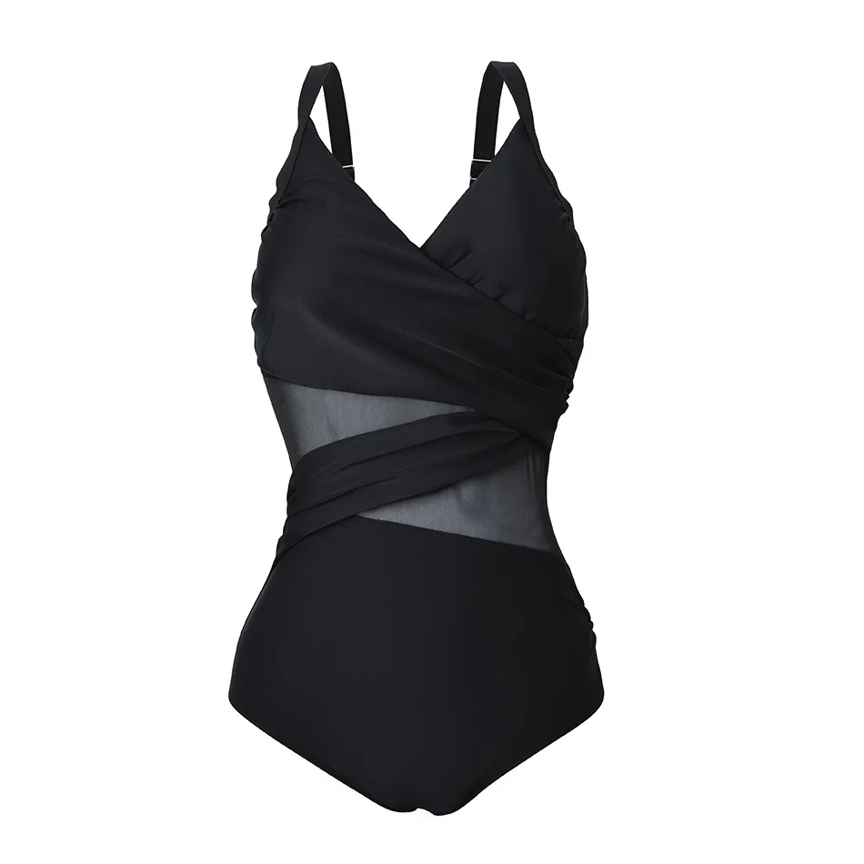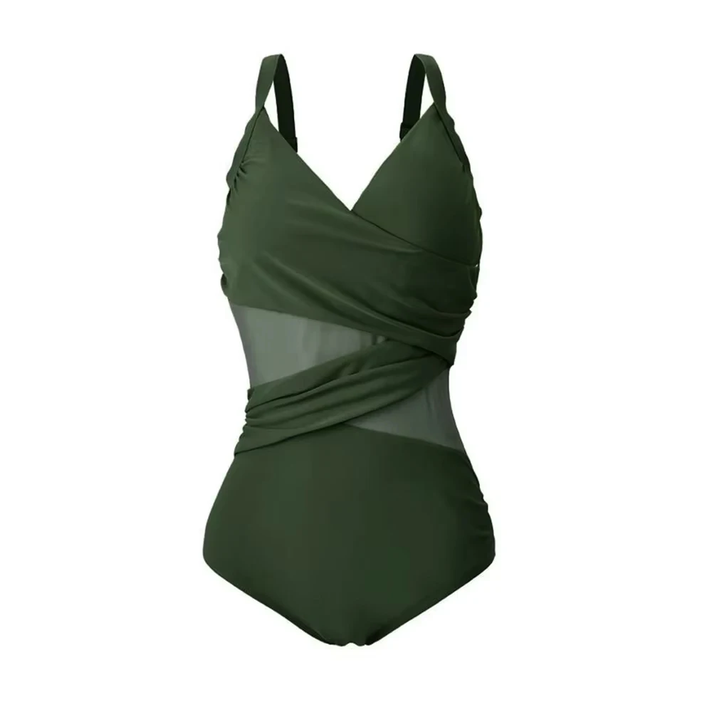 2025 New Sexy Plus Size One Piece Swimsuit Women Mesh Patchwork Bathing Suits Vintage Swimwear Summer Beach Wear Swim Suit M-4XL